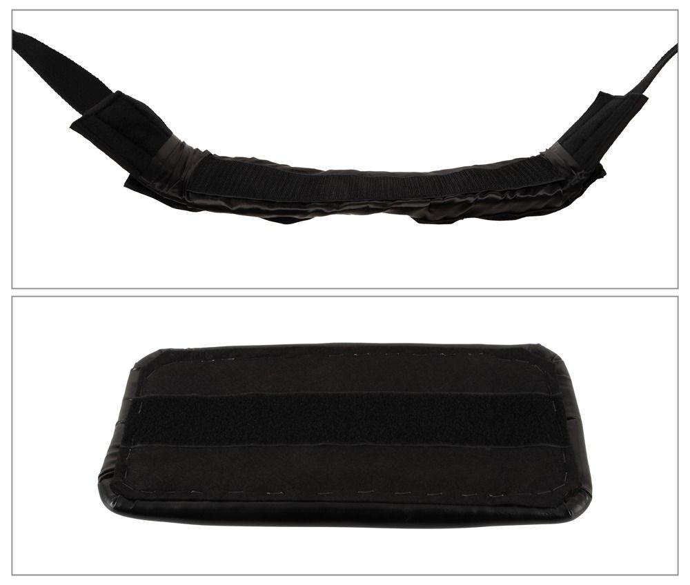 Het zachte zitkussen en de twee zachte ligkussens voor de rug en het hoofd/nek en de twee comfortabele pluche bevestigingslussen voor handen, benen of voeten hangen aan scheur vaste riemen. Alle riemen zijn individueel in lengte verstelbaar. De zitting kan ook worden verwijderd (klittenband).